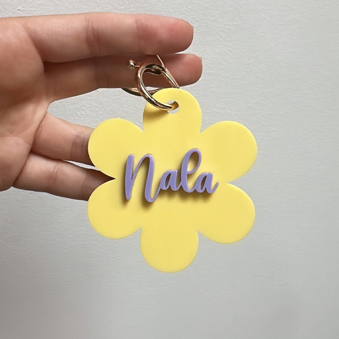 Place name into the text box before adding to cart. Select your desired keyring colour from the drop down menu.